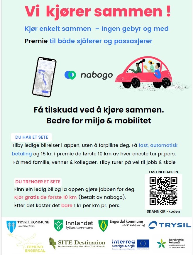 Trysil og Engerdal kommune er gjennom SITE-Mobility med i et pilotprosjekt i Innlandet, og lanserte i går en samkjøringsapp som heter Nabogo. Appen gjør det enklere å sitte på med, eller tilby skyss til andre.