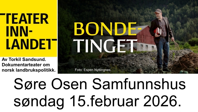 Teater Innlandet kommer til Søre Osen! Stykket har fått svært gode omtaler, om et tema som opptar oss alle. Billettpris kr 300. Salg av kaffe m.m.