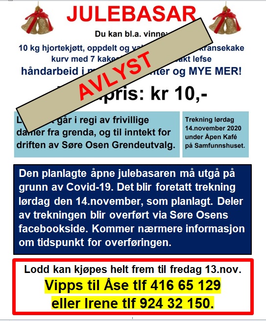 Åpen Kafe utgår, men julebasaren trekkes og sendes på nett.