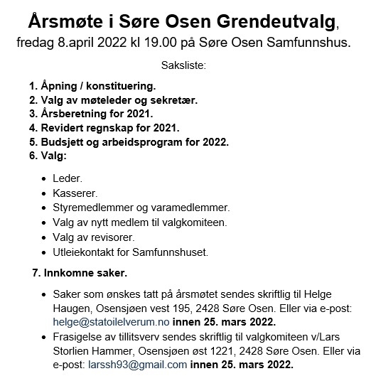 Søre Osen som har forslags- og stemmerett, men årsmøtet er åpent for alle.