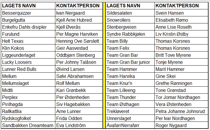 Det er påmeldt 34 lag til årets quiz på Samfunnshuset, som arrangeres Langfredag. Det er plass til ett lag til (maks 6 personer). Ta kontakt på tlf 47464671 om du vil ha den ledige plassen.