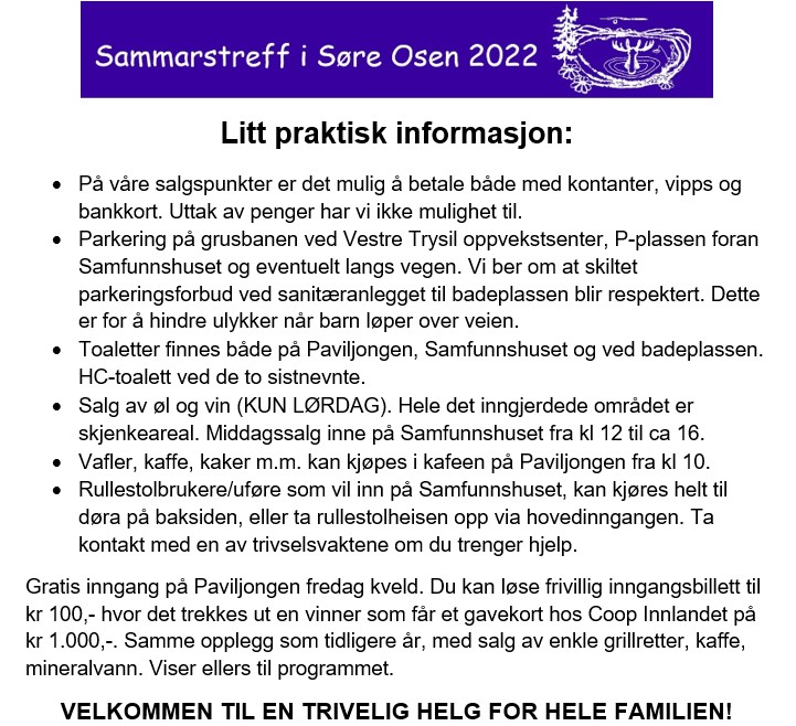 Informasjon til våre gjester på Sammarstreffet