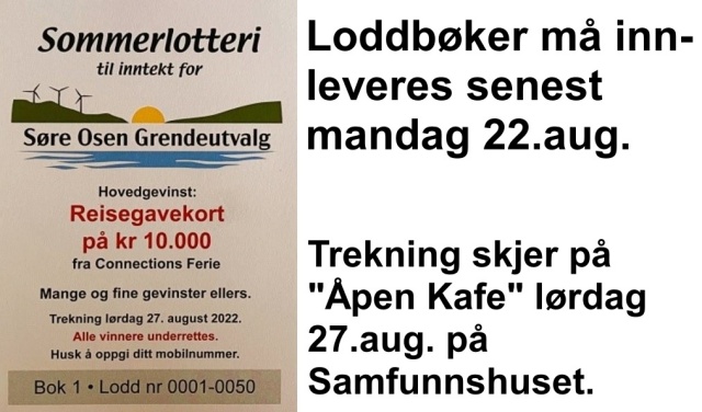 Grendeutvalget har styremøte på Samfunnshuset den 22/8 fra kl 18 til ca 20, og bøker kan leveres direkte dit den kvelden. Ellers kan bøker og oppgjør gjøres direkte til Anne eller Liv slik det ble informert om når dere mottok bøkene, innen samme dato.
