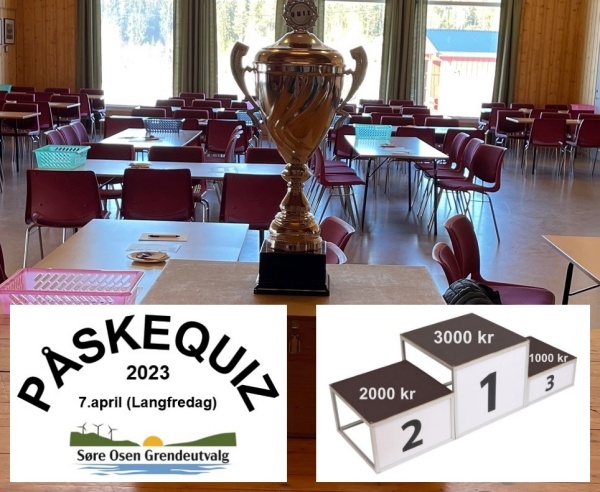 Grendeutvalget ønsker velkommen til tradisjonsarrangementet Påskequiz på Samfunnshuset, Langfredag – 7.april 2023.