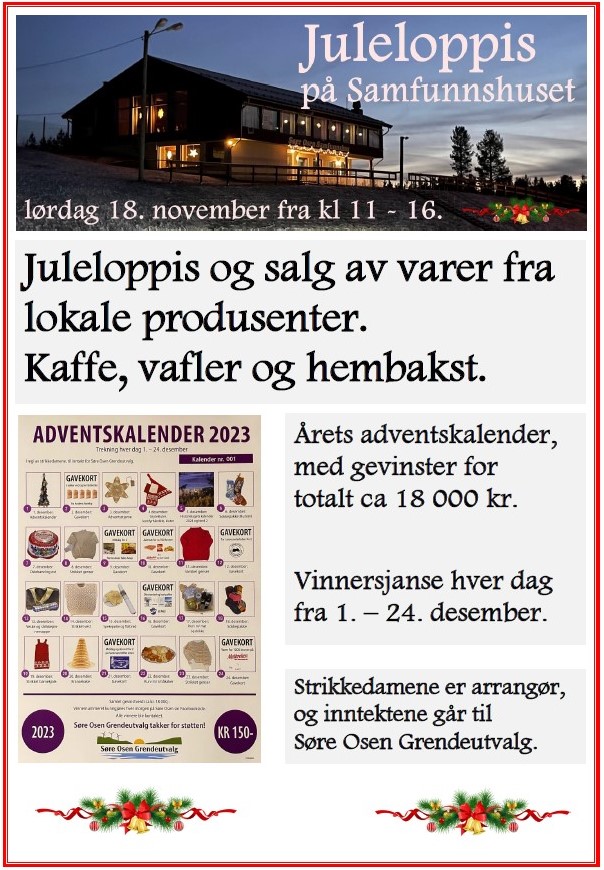 Grendas iherdige strikkedamer ligger ikke på latsia. Nå har de bestemt seg for å holde en Juleloppis, med åpen kafè på Samfunnshuset lørdag 18. november. Årets adventskalender selges, i tillegg til mye annet fint. Velkommen til en trivelig lørdag på Samfunnshuset!