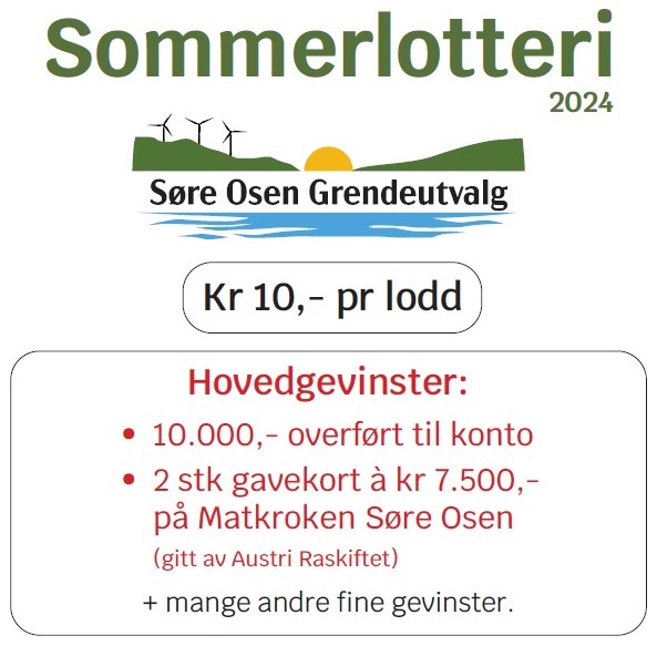 Vil du ha loddbok å selge, kontakt Liv på 902 04 623 eller Anne på 924 62 832. Vi har opparbeidet oss en sterk og god kultur på lotterier i Søre Osen. Håper det fortsetter i år også!