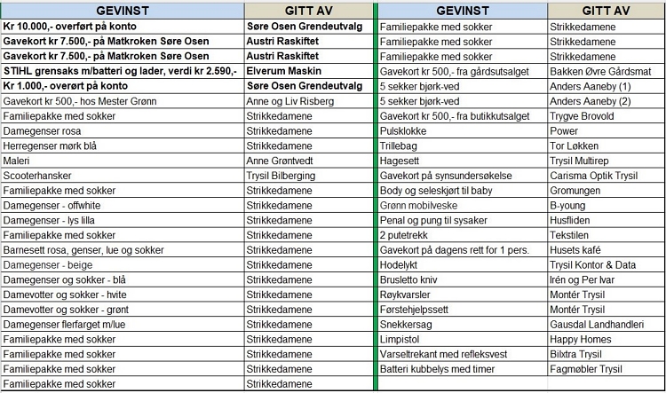 Sommerlotteriet - gevinstliste